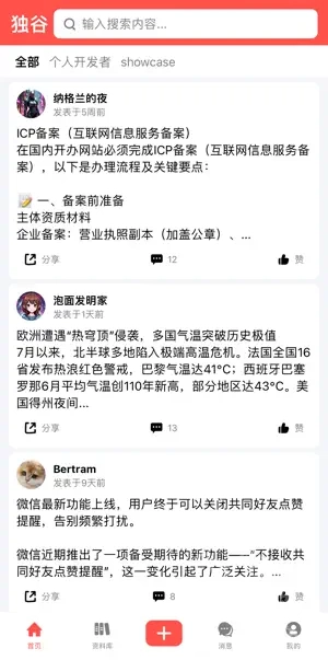 独谷社区软件打造了一个聚焦技术开发的交流专区,开发者们能在此探讨编程难题、分享开发经验,助力彼此的技术成长。社区内划分了多个板块,覆盖编程语言、框架应用、算法研究等热门领域,便于用户迅速定位感兴趣的内容。
