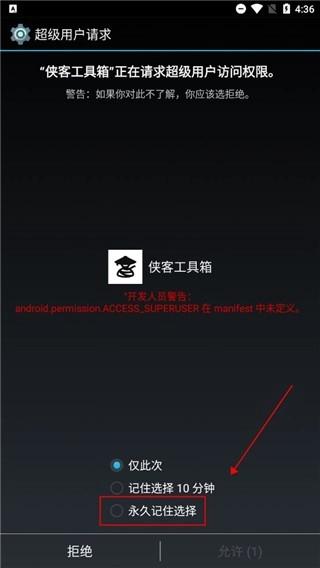 2、在这个界面选择【永久记住选择】,然后点允许。