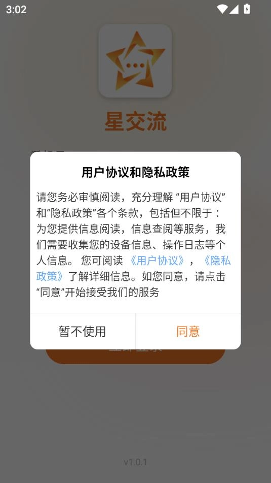 1.打开星交流,点击同意
