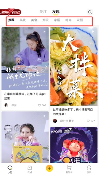 1、打开软件可以看到其中拥有美妆、美食、潮玩、时尚、汉服等板块