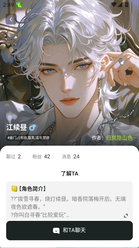 1、双模式剧情互动:提供“角色剧本”自由对话(AI以设定人设持续互动)与“预设剧本”点按推进(按章节解锁剧情)两种模式,满足不同互动偏好需求。