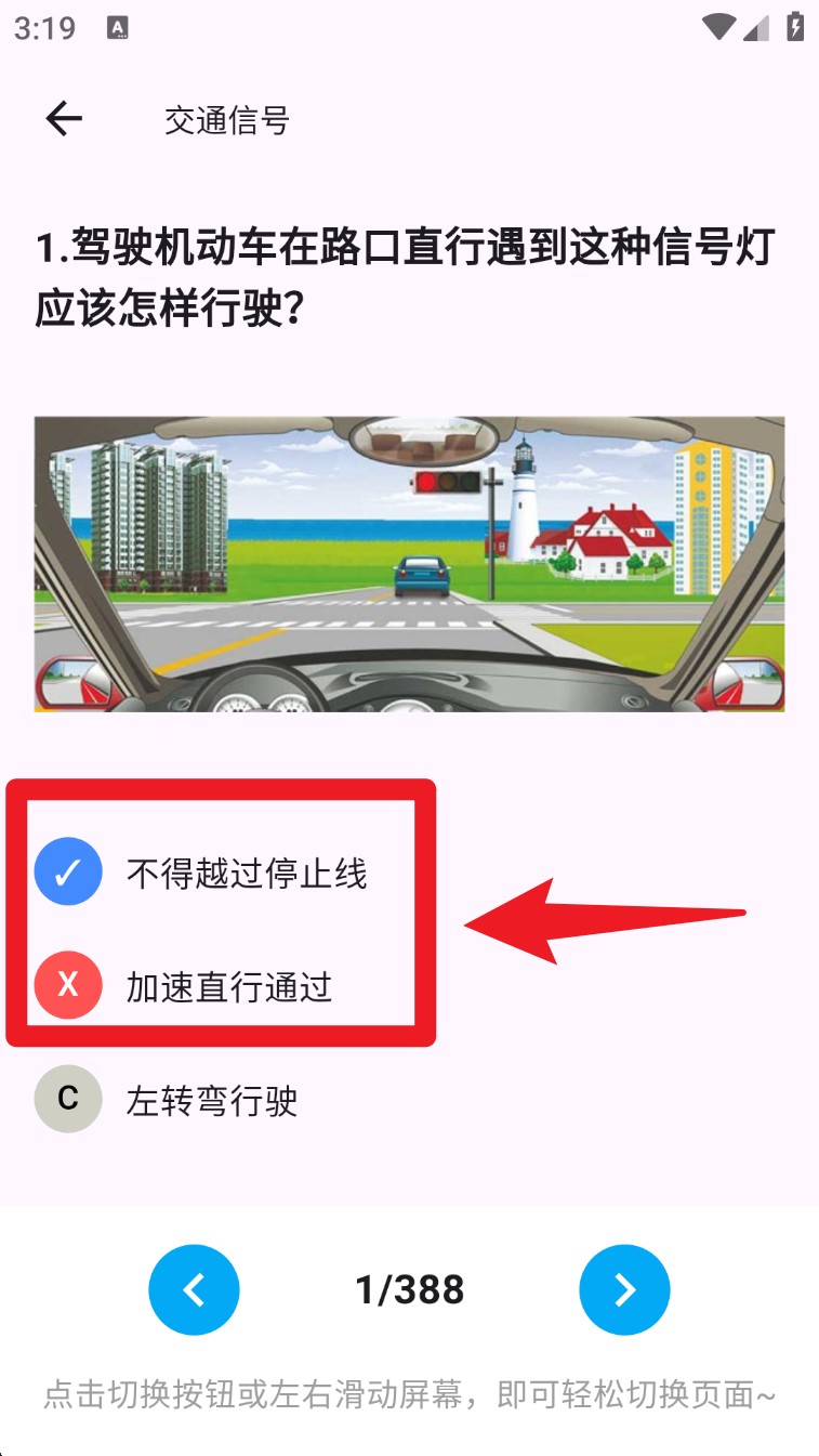 1下班回家的路上拿出手机做几道题,不知不觉就把交通标志的含义记牢了。