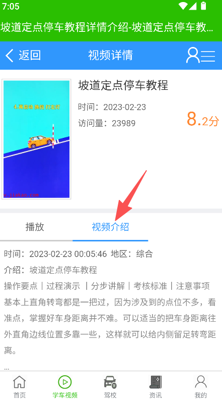 2点击进入视频详情页面,通过查看视频介绍来掌握操作要点、考核标准等相关内容。