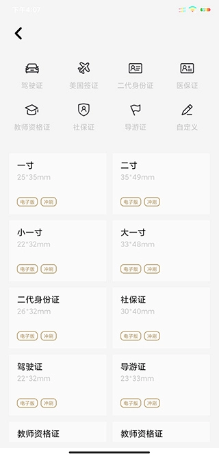 2、在证件照里选择需要的照片类型