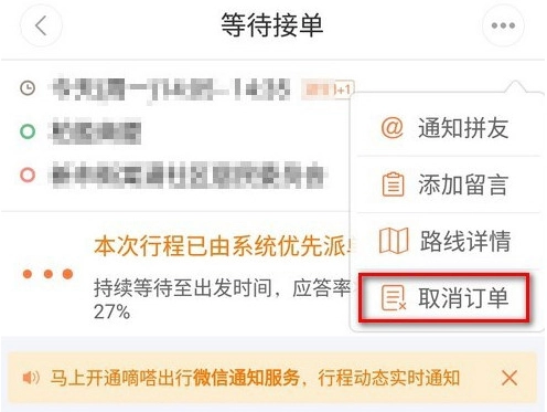 5、随即在弹出的菜单中选择“取消订单”选项。