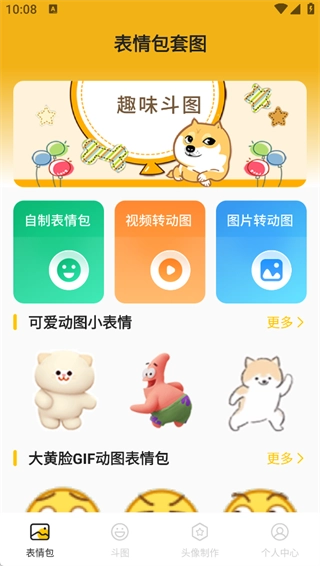 1、打开表情包生成App,选择你需要的功能,如【自制表情包、视频转动图、图片转动图、头像制作等】。