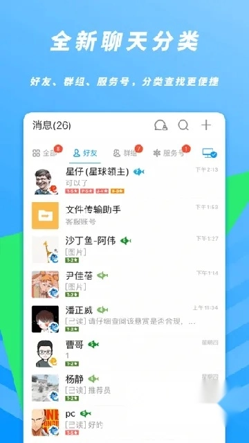 2、该软件具备诸多亮点特性:聊天记录可实现四端同步,支持在群聊与私聊场景中进行送礼操作,好友名片会公开展示认证信息,群聊功能则继承了QQ群的管理能力。