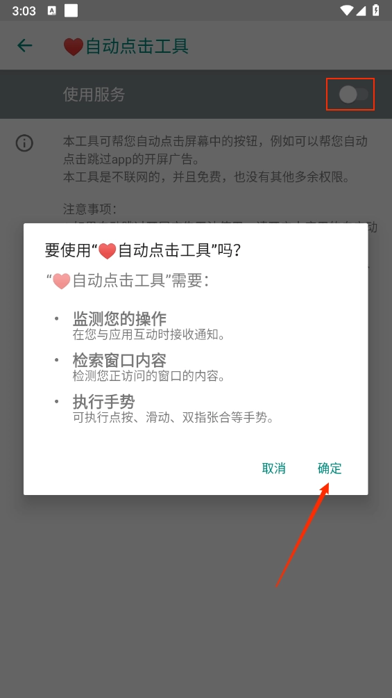 2、要是某天突然用不了了,可以试试这些办法:①关闭后重新开启无障碍权限、②卸载后重新安装、③重启手机。