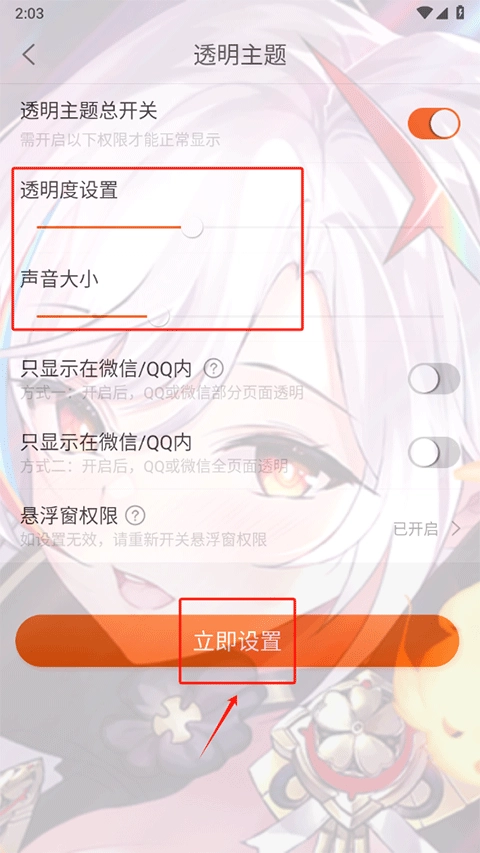 3、设置动态壁纸需从相册里挑选一段视频,静态壁纸则要选一张图片;导入素材后,可对壁纸的透明度和声音大小进行调整,完成后点击“立即设置”按钮即可。