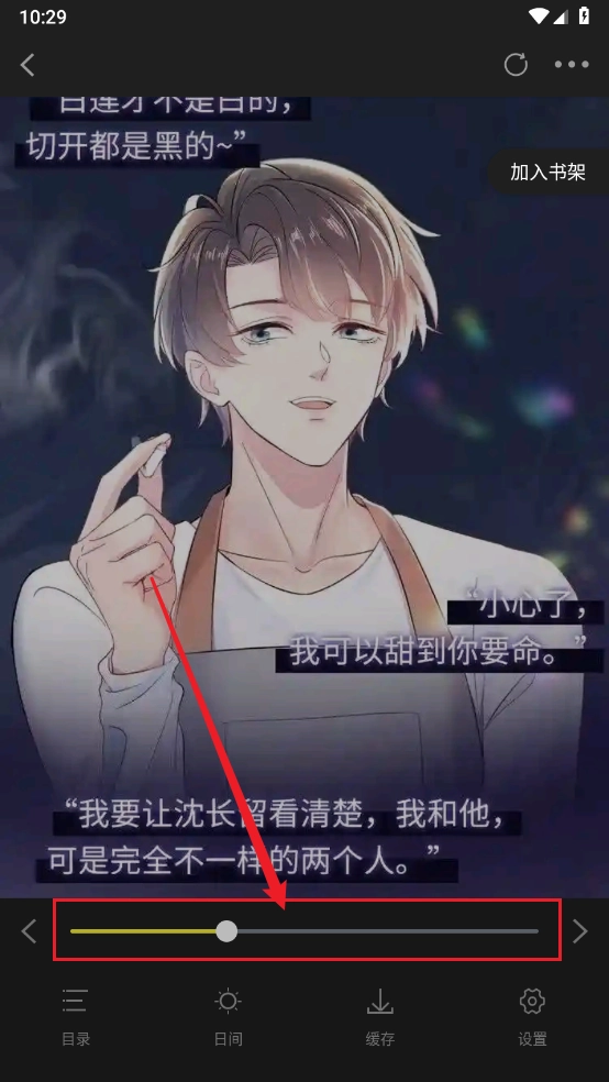 4、如图所示,已切换夜间模式,还可以滑动圆球调整亮度的强弱。