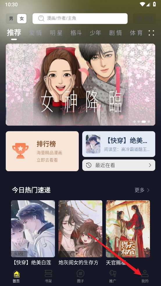 1、打开创漫客,进入首页,选择所需阅读的漫画。