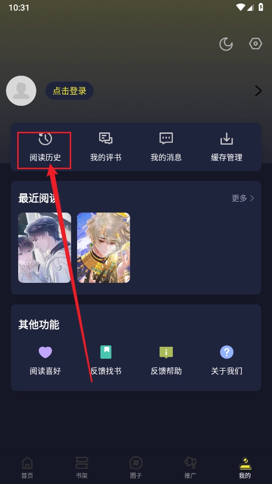 2、然后在我的页面选择"历史阅读"。