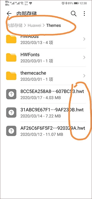 1、把在酷安下载好的文件复制(或移动)到内部存储里的Huawei文件夹下的Themes子文件夹中。