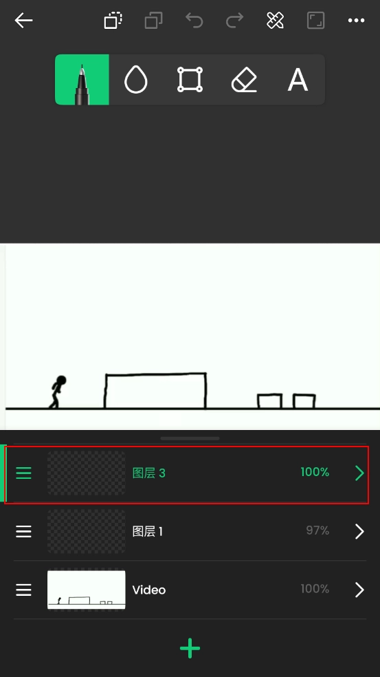 3、然后点击底部的"+"号,即可新建图层。