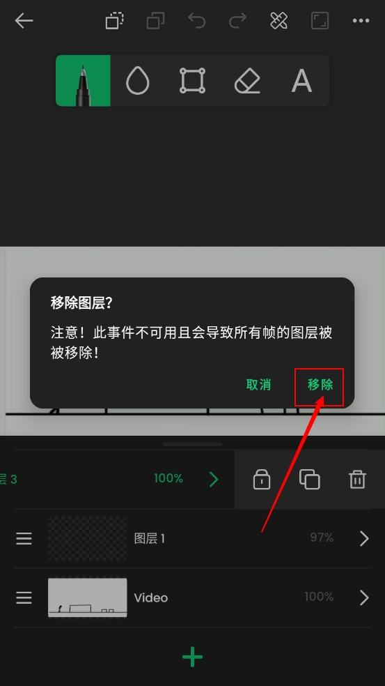 6、如图所示,点击“移出”按钮即可操作。需要注意的是,该事件当前不可使用,若强行操作会导致所有帧的图层被移除。