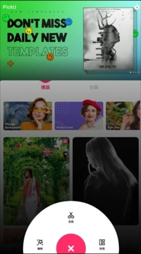 软件最下方有个“+”按钮,点击后能看到编辑、抠图、拼图等功能。