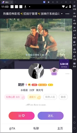 3、进入房间之后就可和陌生人一起看电影啦