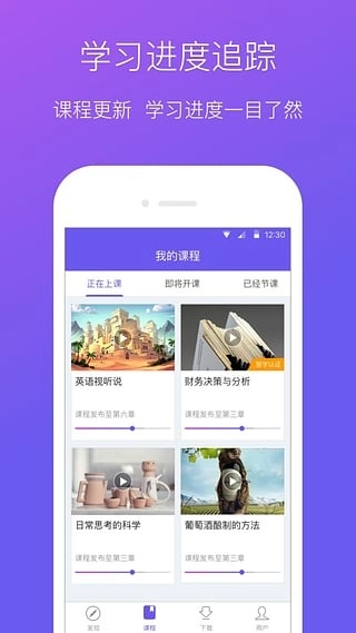 和Web端的学习进度保持同步,能轻松了解课程的更新情况以及自己的学习进度,方便管理个人的学习时间。