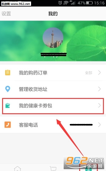 在“我的”中选择“我的健康卡券包”