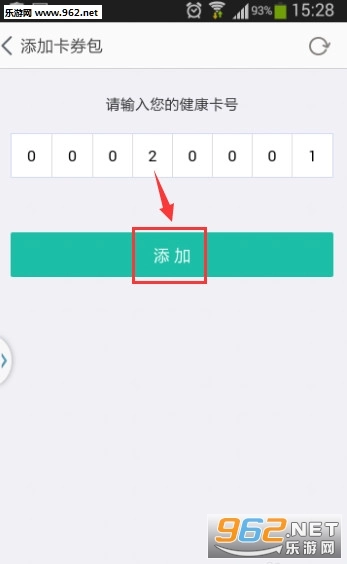 输入8位健康卡号,点击“添加”按钮