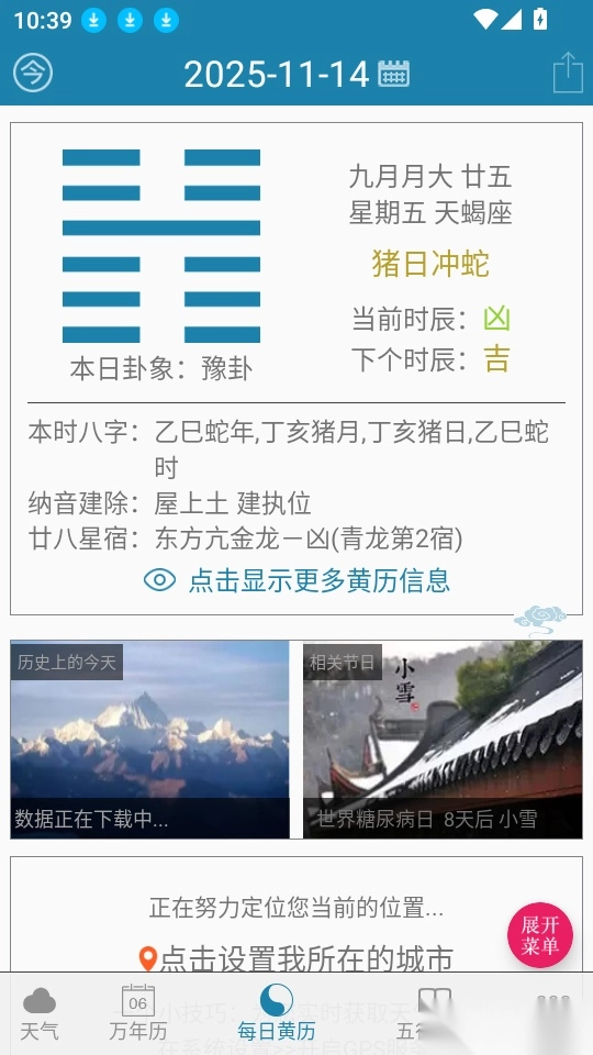 软件提供了专业的黄历卦象,方便用户随时查询黄历宜忌,就可以实现每日一卦。