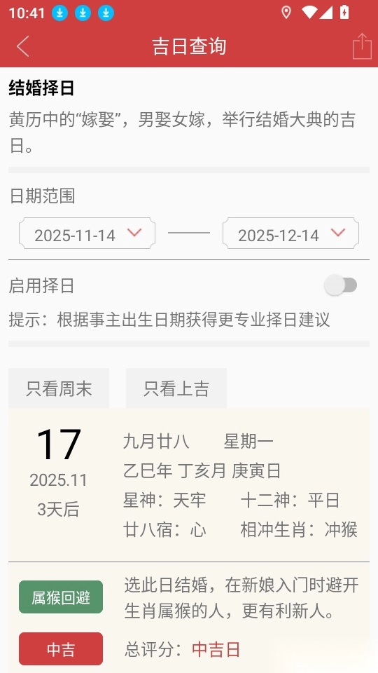 4、之后就可选择需要查询的吉日,点击“吉日”来进行下一步。
