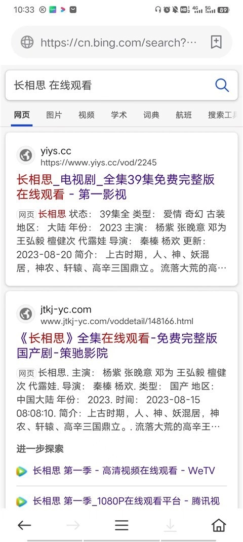 这款软件本身不具备影视播放功能,仅提供搜索服务。若需播放影视内容,需跳转至外部应用程序,因此所有内容展示均由微软必应与手机浏览器负责提供。