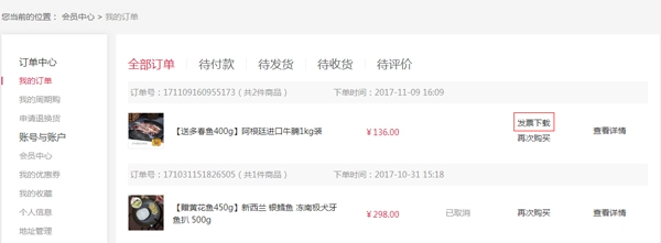 订单支付成功后,您可前往“会员中心->发票助手”,接着挑选需开具发票的订单并完成开票操作。