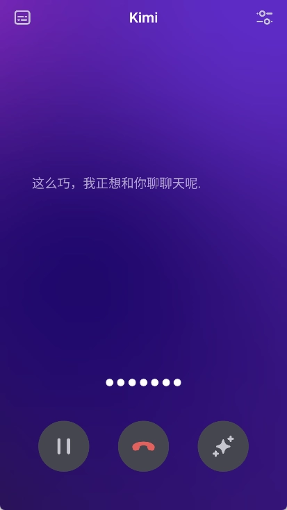 也可以点击右侧的电话按钮,和Kimi进行语音通话,跟它聊天或者提出各类问题。