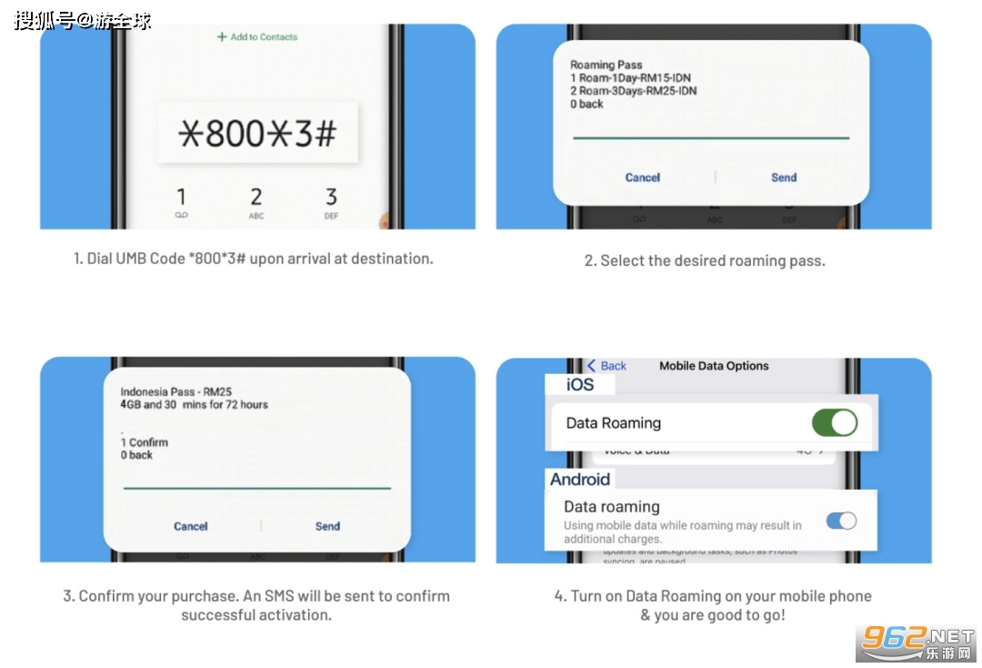 和我们的终极伙伴——30天无限互联网漫游通行证一同开启30天的冒险旅程,足迹遍布全球57个国家。仅需RM98。