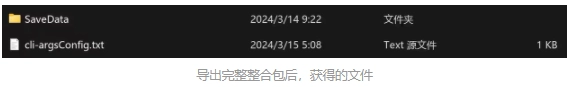 导出完成后会自动弹出一个文件夹。要是你想把这个模组包分享给其他人,只需要把SaveData文件夹里的两个子文件夹移动到和SaveData同级的目录下,然后删除SaveData文件夹以及另一个txt文件就可以了(具体可参考下图)。