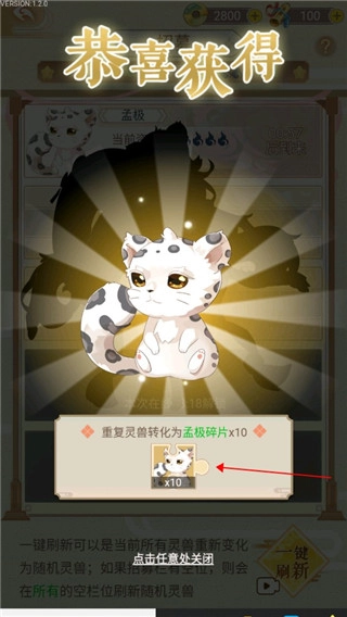 当灵兽提升材料不够时,就去招募一只相同的灵兽,再次得到相同的灵兽就会自动变成灵兽碎片。