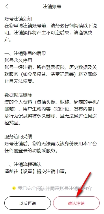 6、阅读账号注销须知点确认注销即可。
