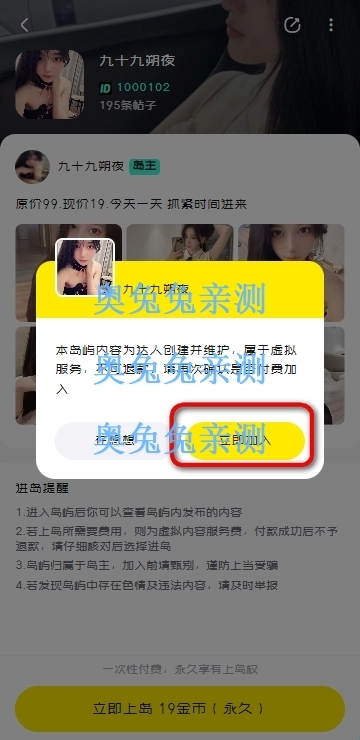 3、来到个人页面后,点立即上岛。