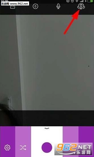 打开棒糖相机后,点击界面右上方的按钮,就能选择“反拍”模式,系统默认的是自拍模式。