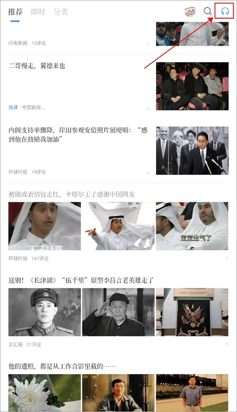 1、进到百度新闻后,可以看到右上角有个耳机的图标,点击图标即可语音包。