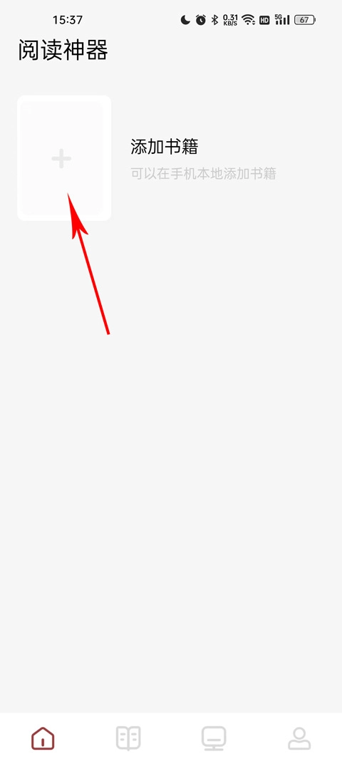 首页上方有一个添加书籍的加号,点击进行添加;