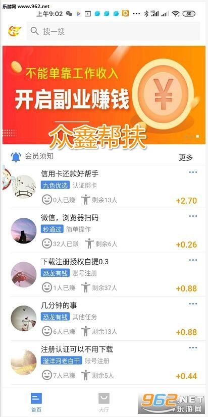 《众鑫帮扶》是2020年全新推出的手机任务赚钱软件,平台为用户提供了丰富多样的赚钱任务,用户只需按要求完成任务即可获取不错的收益。该软件操作十分简便,赚钱过程轻松无压力,感兴趣的朋友可以前往962平台了解体验!