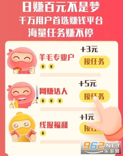 新用户注册聚悬赏平台并完成新手任务,就能获得约1元的现金奖励,所赚现金支持便捷提现。