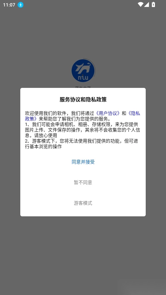 1. 启动软件后阅读“服务协议和隐私政策”,点击“同意并接受”按钮进入应用