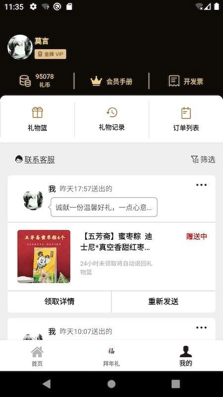 5、打开“我的”页面,能更好地管理你的礼品,帮助你快速使用。