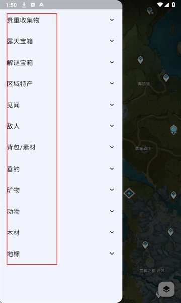3、点击进入地图后,就可以看到资源标点