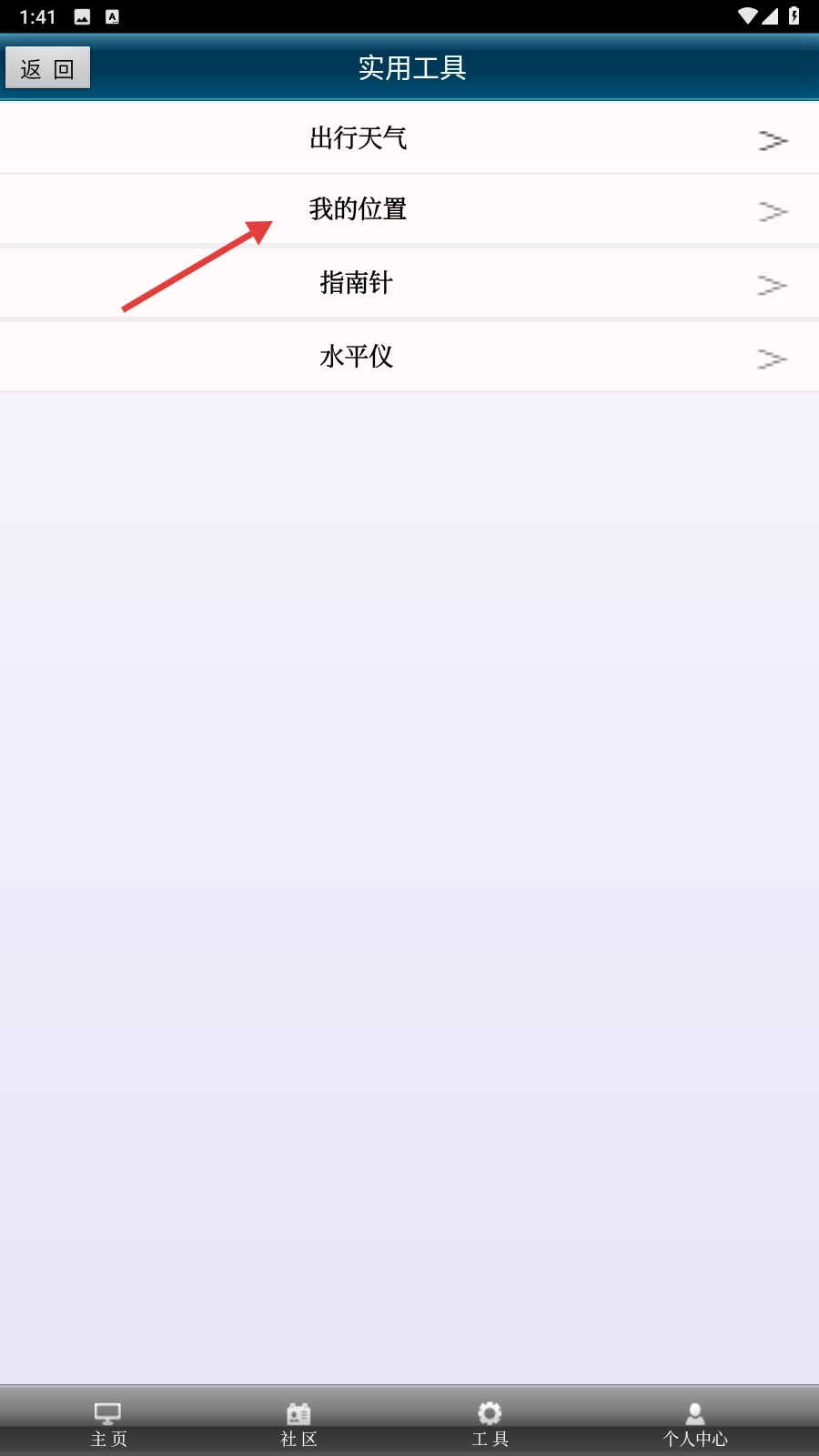 在实用工具页面中找到并点击【我的位置】选项,以此来获取当前的定位信息。