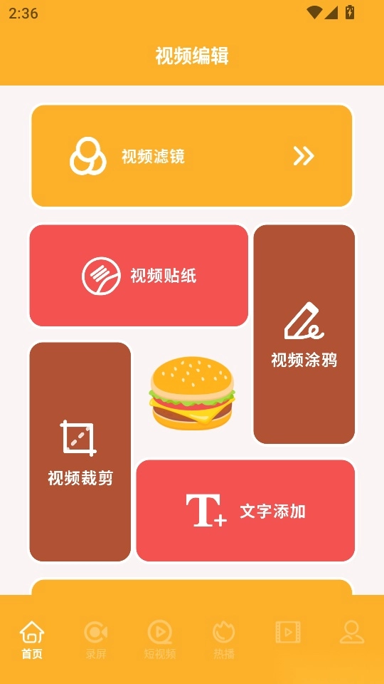 2.在软件首页界面找到底部菜单栏的“录屏”功能按键,点击进入