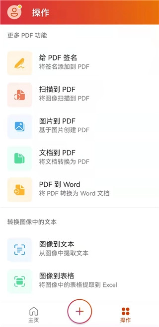 右侧导航栏里还有几项PDF相关功能,具体包括给PDF签名、扫描到PDF、图片转PDF、文档转PDF以及PDF转Word。