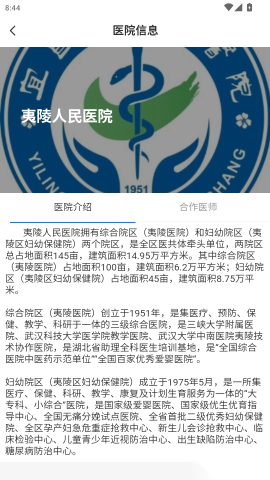 还对所有合作医院进行了准确且详尽的介绍说明,方便用户快速了解医院情况。