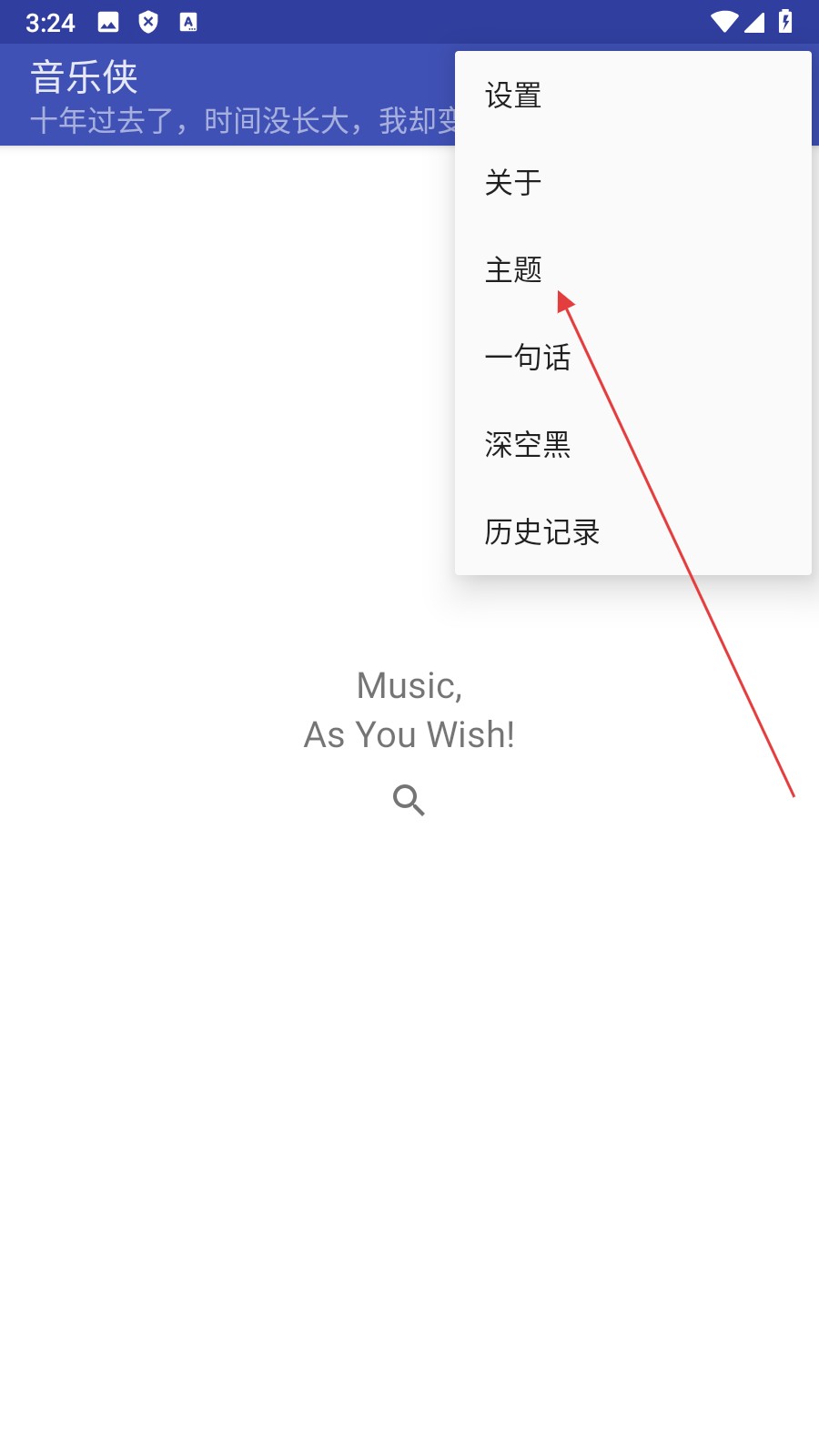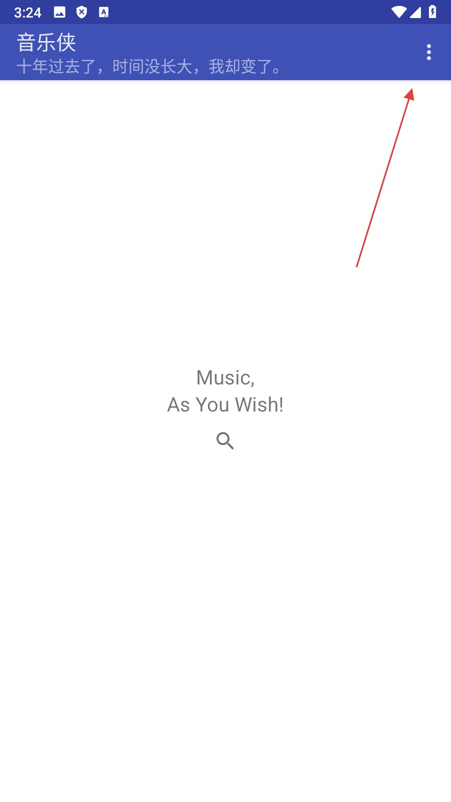 在音乐侠的主界面上,点击右上角的三点菜单按钮,就能展开功能选项的列表。