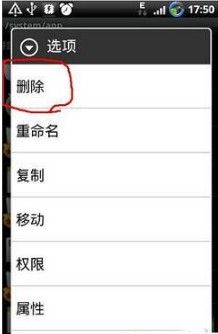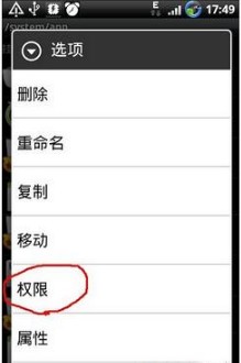 7、若要删除某个文件,只需在该文件上长按,此时会弹出“选项”菜单,从中选择“权限”即可。
