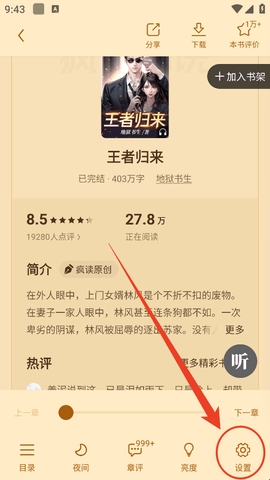 2、接着就能看到阅读器的菜单界面,随后点击下方的“设置”选项。