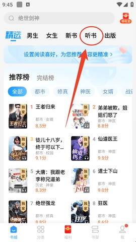 1、进入软件首页后,在栏目区域找到“听书”选项,点击进入该板块。